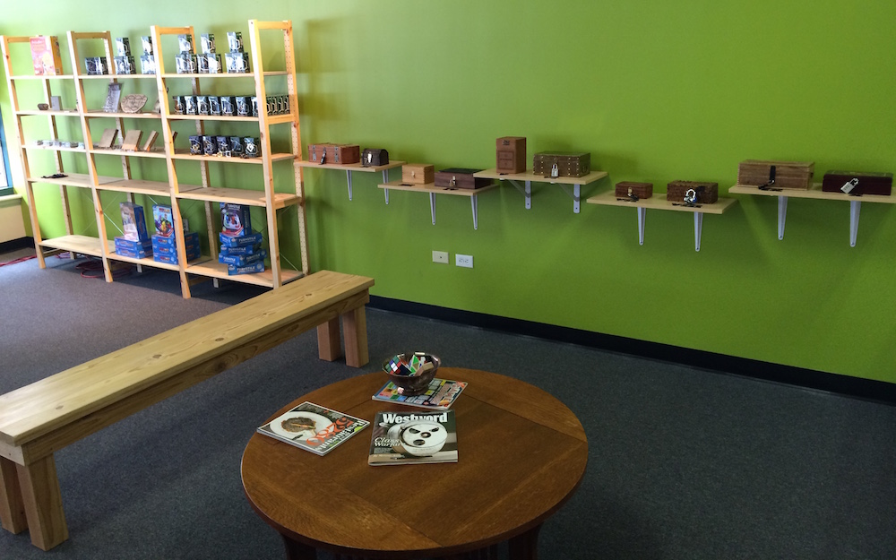 Puzzah has a beautiful waiting area complete with puzzles for sale, and lockers for players to stash their belongings. They’re even building a mini puzzle game to occupy players while they wait their turn to enter their room.