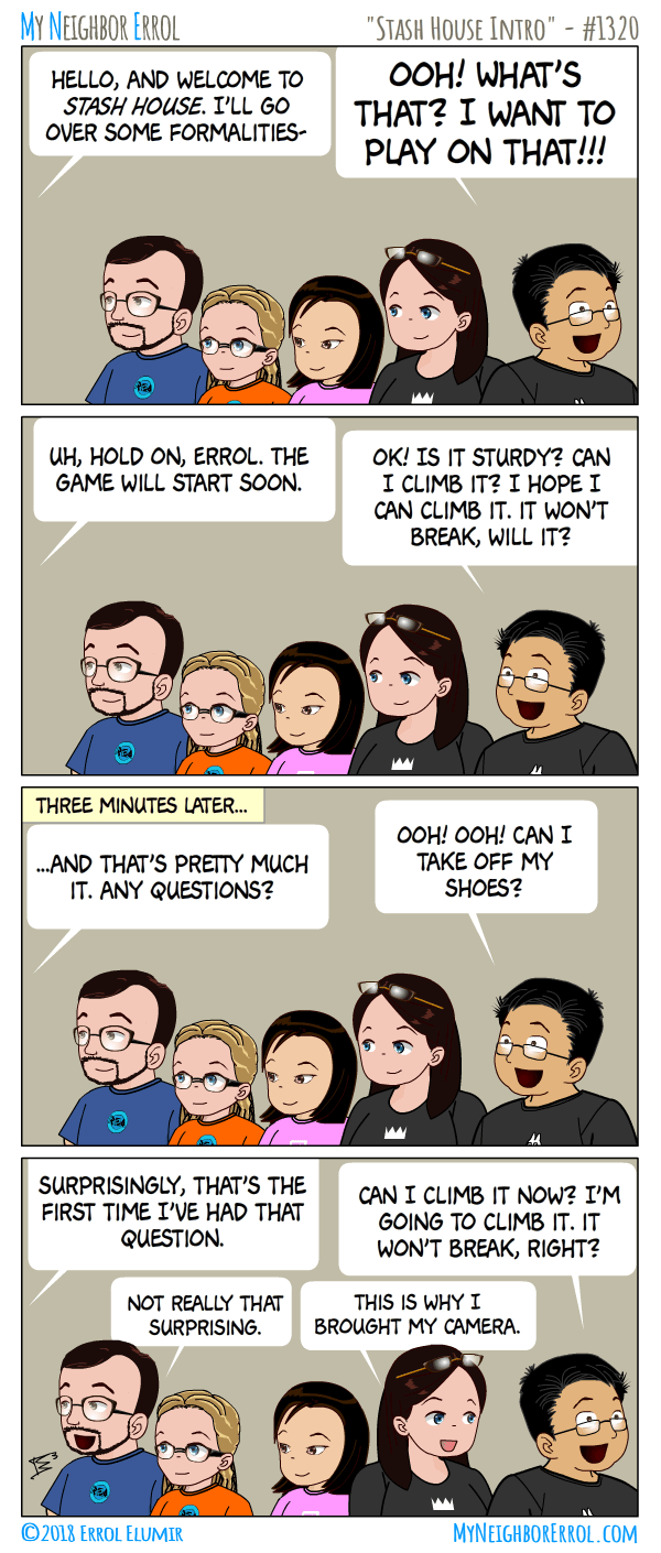 Comic of Errol asking if he can take his shoes off in Stash House.