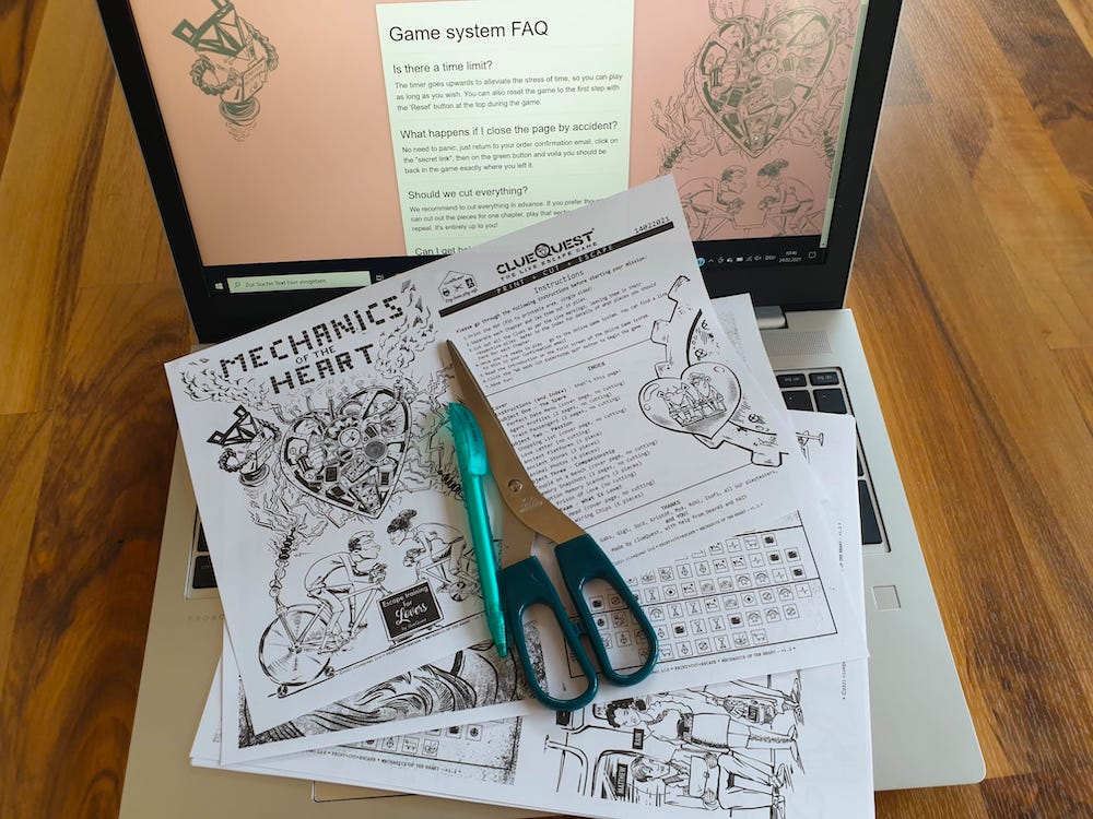 Print + Cut + Escape: Mechanics of the Heart is a print-and-play escape game created by clueQuest in London, England.