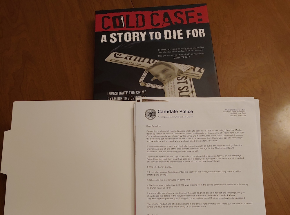 A Cold Case: A Story to Die For is a tabletop mystery game created by ThinkFun.
