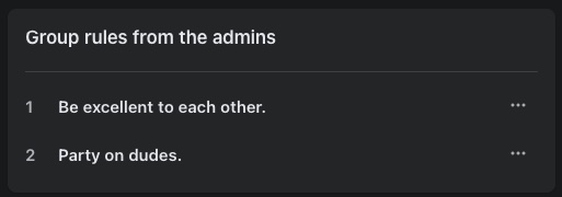 Instead, I looked up the Group’s rules to make sure that I hadn’t violated any of them. The rules were presented as follows: