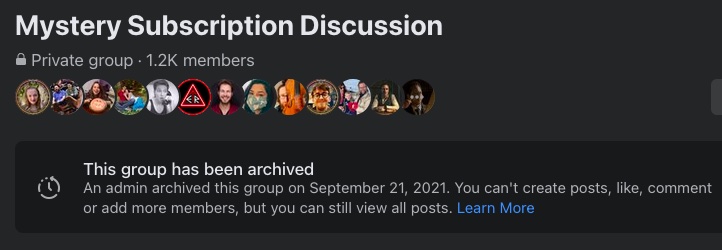 It seems that a lot of us in the community were excited about The Light in the Mist, as the Kickstarter funded in less than 2 hours and crossed 200% funding in less than a day. I imagine that I wasn’t the only person who was eager to post about it in the community, but instead of censoring us one at a time, the Mystery Subscription Discussion leadership decided to go to extremes and archive the entire community to achieve absolute censorship. They posted no notice explaining their actions.