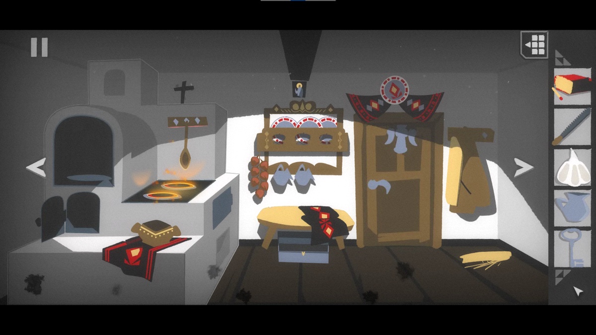 Moroi Spring’s Winterlore is an elegantly designed point-and-click escape room that stands out for its vivid depiction of Romanian folklore. Beautiful art of a traditional Romanian house facilitated a range of puzzles centered around tasks like making traditional food and crafts. Small colorful details, like traditional woven table coverings, apparel, and table settings, immediately brought me back to my own travels through Transylvania, where I saw, heard, and tasted many of the items so lovingly and accurately represented in Winterlore.