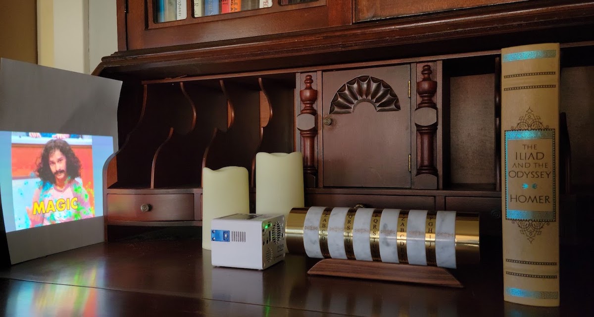 If you’re interested in checking out a good pico projector, I was using an AAXA P2-A Android (which is older and hard to find new these days), but if I were to buy one today, I’d probably get a Kodak Luma 350.