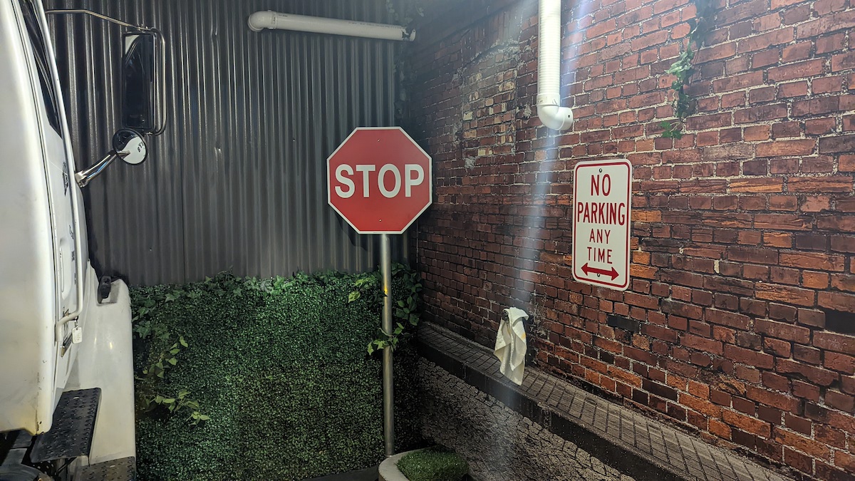 Confusion Escapes’ The Last Job stood out for a very big reason: the room was filled with a full-size semi-trailer truck, impressively passing through multiple walls. This bold calling card was also echoed in Confusion Escapes’ lobby, where the front end of the truck appeared to be breaking through a brick wall. This brick wall and a nearby street scene were beautifully painted murals, and the illusory transitions from painted to real bricks and a painted to physical lamppost showed off Confusion Escapes’ cleverness in engineering and design.