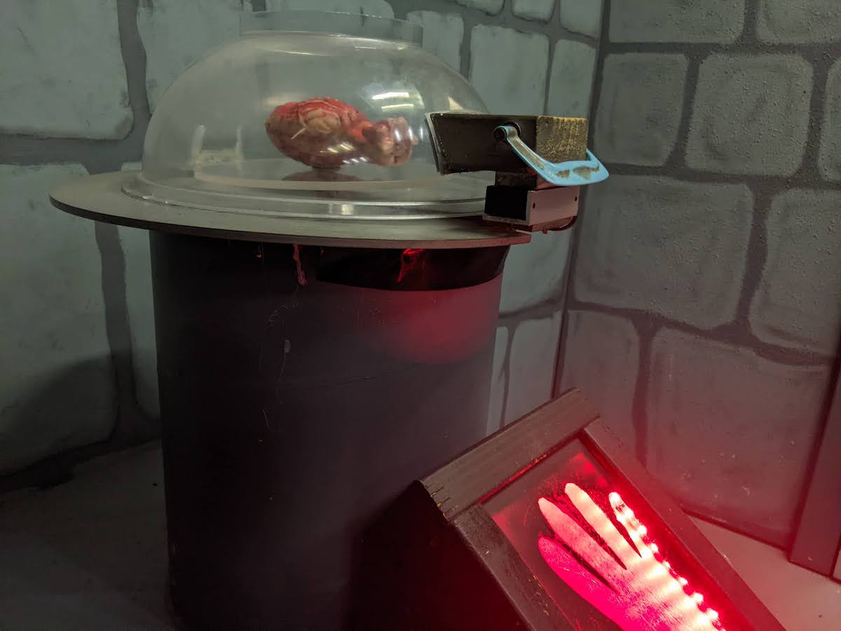 Dr. Gene’s lab emanated campy science vibes throughout. Maybe it was the enshrined heart, the caged monkey, or the larger-than-life plinko machine, but it was pretty clear that something sinister and bizarre was hidden in these walls.