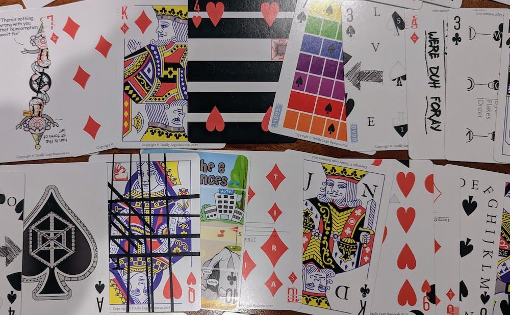 ❓ The cards in Lost in the Shuffle were all valid playing cards… yet many of the cards were sufficiently cluttered with additional information that I’d probably never choose to use the deck for any non-puzzle-solving purposes.