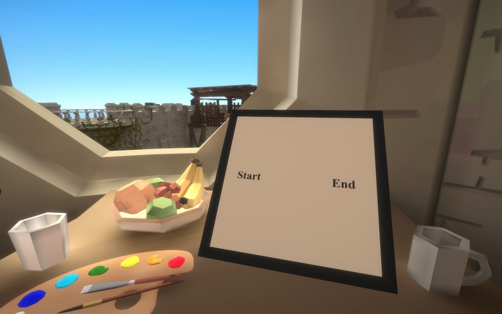We explored a 360-degree cryptic garden world without direction as to our goal. We discovered puzzles along the way that generally (though not always) taught us how to interact with them.