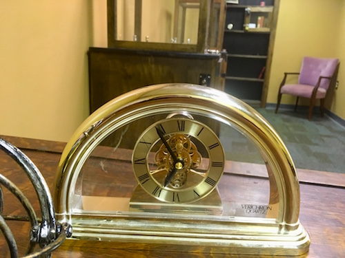 In-game: A view of the room shot from behind a desk.