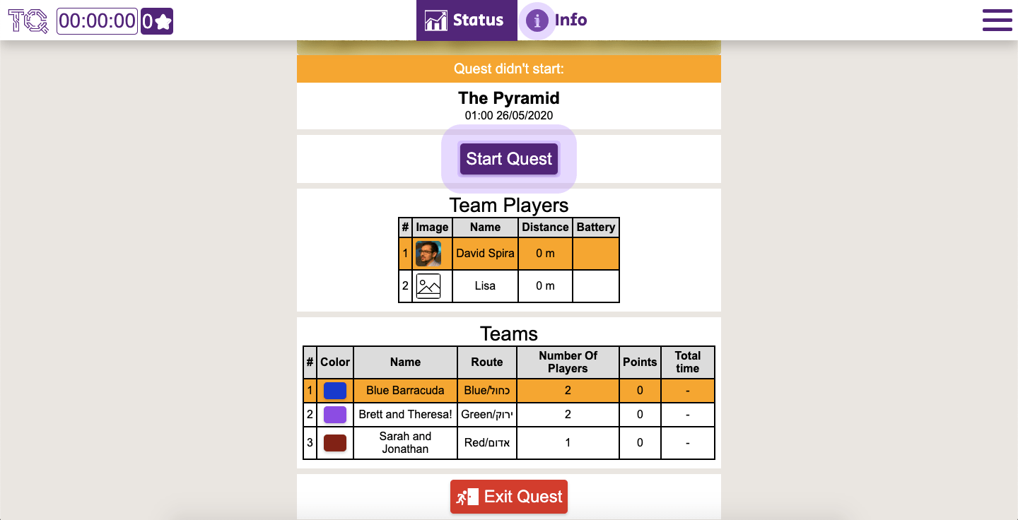 Quest start screen. Blue team is named, "Blue Barracuda."