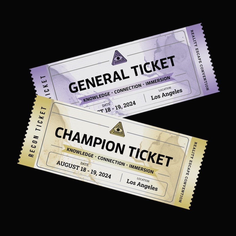 A General ticket and a Champion ticket for RECON 24 LA fanned out.